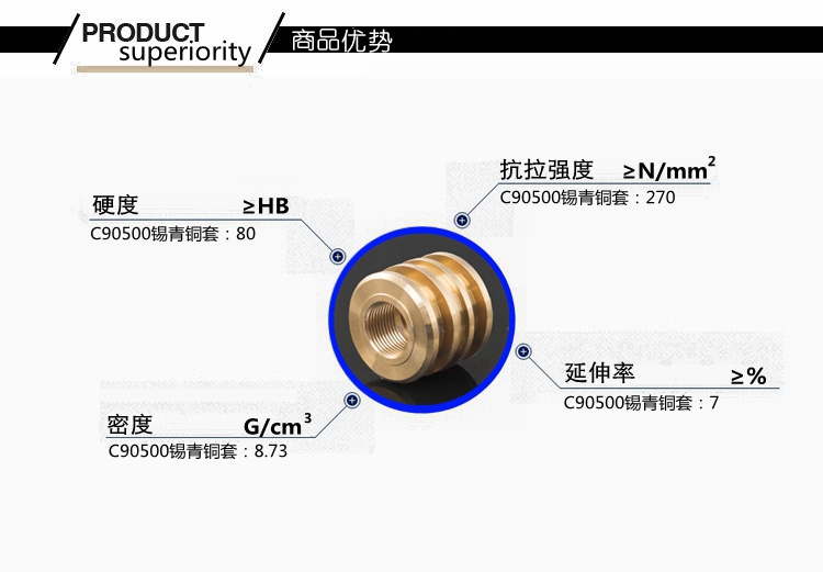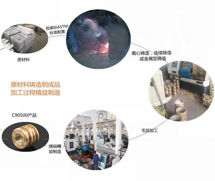 本產(chǎn)品實行ASTM標準………………………………………………… 根據(jù)客戶產(chǎn)品需求我們提供的鑄造方式有:離心鑄造,連續(xù)鑄造和金屬型鑄造。…………………………………………………………… 牌號C90500合金銅化學(xué)成分:Cu86-89 Sn9-11 Pb0.3 Zn1-3 Fe0.2 Al0.005 Si0.005 Ni1 Sb0.2 P1.5 S0.05………………對比國內(nèi)相近牌號:ZCnSn10Zn2