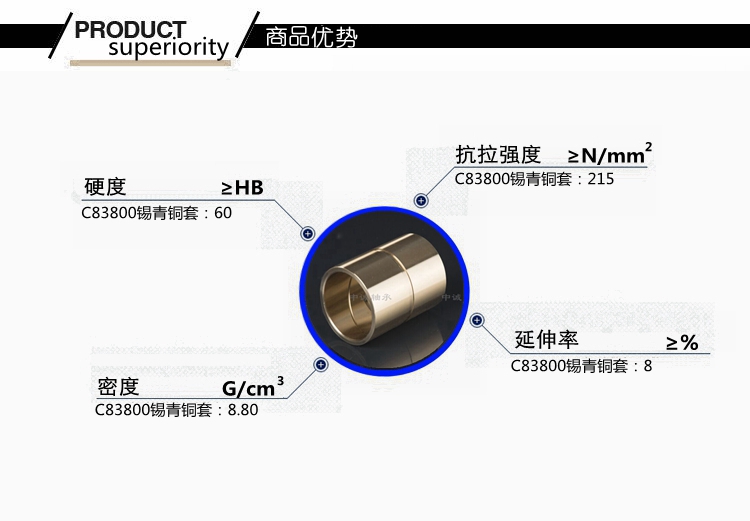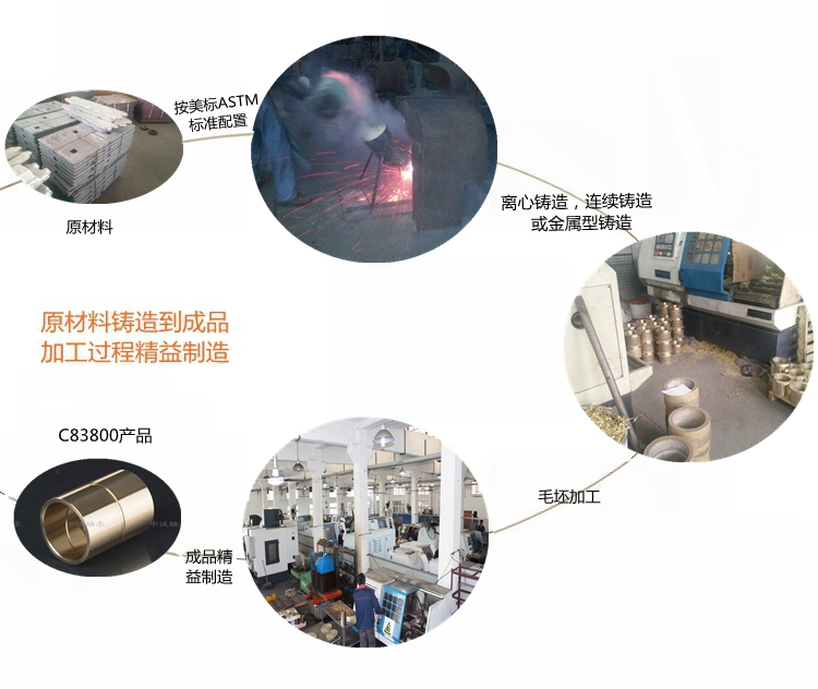 本產品實行ASTM標準………………………………………………… 根據客戶產品需求我們提供的鑄造方式有:離心鑄造,連續(xù)鑄造和金屬型鑄造。…………………………………………………………… 牌號C83800合金銅化學成分:Cu82-83.8 Sn3.3-4.2 Pb5-7 Zn5.5-8 Fe0.3 Al0.005 Si0.005 Ni1 Sb0.25 P1.5 S0.08…………對比國內相近牌號:ZCuSn3Zn8Pb6Ni1