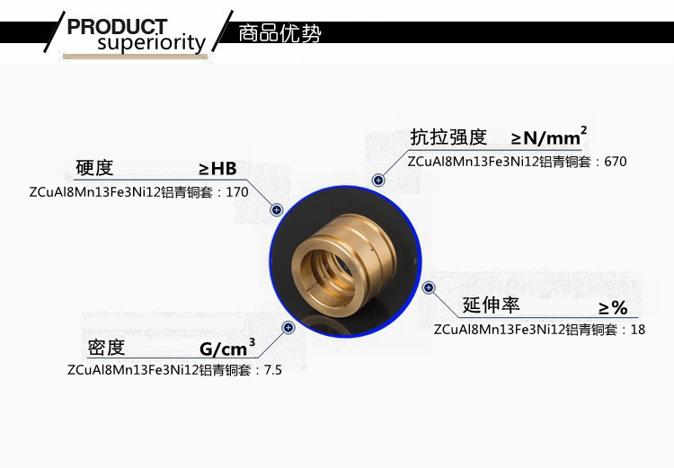 本產(chǎn)品實(shí)行GB標(biāo)準(zhǔn)………………………………………………… 根據(jù)客戶產(chǎn)品需求我們提供的鑄造方式有:離心鑄造,連續(xù)鑄造和金屬型鑄造。…………………………………………………………… 牌號(hào)ZCuAl8Mn13Fe3合金銅化學(xué)成分:Cu余量 Pb0.02 Zn0.3 Fe2-4 Al7-9 Mn12-14.5 Si0.15 C0.1