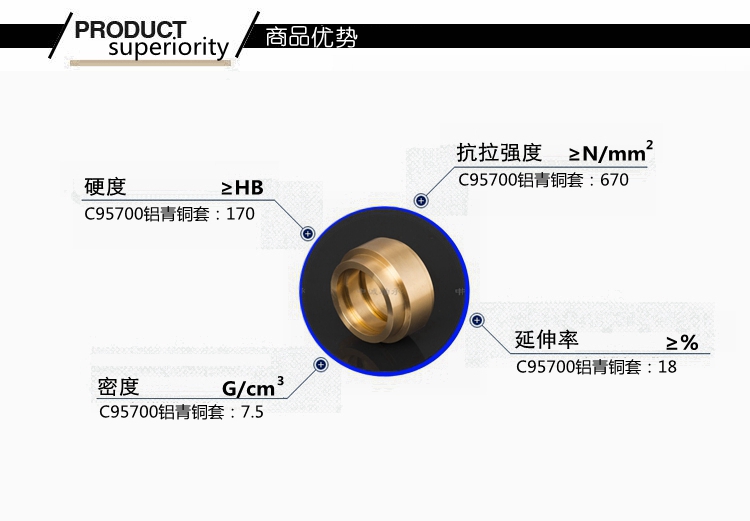 本產(chǎn)品實(shí)行ASTM標(biāo)準(zhǔn)………………………………………………… 根據(jù)客戶(hù)產(chǎn)品需求我們提供的鑄造方式有:離心鑄造,連續(xù)鑄造和金屬型鑄造。…………………………………………………………… 牌號(hào)C95700合金銅化學(xué)成分:Cu余量 Pb0.3 Fe2-4 Al7-8.5 Mn11-14 Si0.1 Ni1.5-3…………對(duì)比國(guó)內(nèi)相近牌號(hào):ZCuAl8Mn13Fe3Ni12