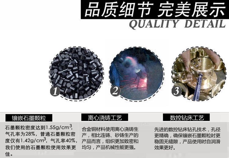 我們根據(jù)使用工況和環(huán)境要求,選擇不同的銅合金材料,如大氣環(huán)境選擇高力黃銅為基體;水環(huán)境下一般選用錫青銅為基體;高溫或海水腐蝕等工作環(huán)境選用鋁青銅為基體;其他特殊工況環(huán)境選擇相應(yīng)的銅合金材料為基體;然后根據(jù)產(chǎn)品的實際受力情況和運動方式,確定潤滑劑的排布方式和密度,以求達到最佳使用效果和壽命。 銅石墨軸承使用廣泛,如冶金機械,工程機械,注塑機械,水利機械,海工裝備,風(fēng)電設(shè)備,模具行業(yè),印刷包裝機械,礦山設(shè)備,石油化工機械,各種輕工機械等等。