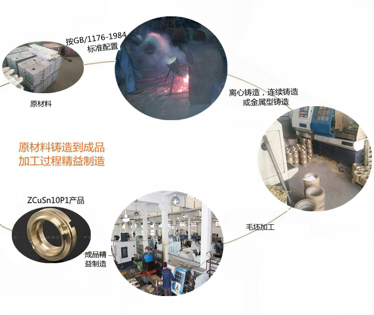 本產品實行GB/1176-1984標準……………………………………… 根據客戶產品需求我們提供的鑄造方式有:離心鑄造,連續(xù)鑄造和金屬型鑄造。…………………………………………………………… 牌號ZCuSn10P1合金銅化學成分:Cu余量 Sn9-11.5 Pb0.25 Zn0.05 Fe0.1 Al0.01 Mn0.05 Si0.02 Ni0.1 Sb0.05 P0.5-1 S0.05