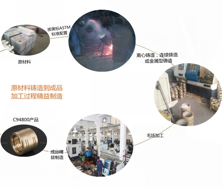 本產(chǎn)品實(shí)行ASTM標(biāo)準(zhǔn)………………………………………………… 根據(jù)客戶產(chǎn)品需求我們提供的鑄造方式有:離心鑄造,連續(xù)鑄造和金屬型鑄造。…………………………………………………………… 牌號(hào)C94800合金銅化學(xué)成分:Cu84-89 Sn4.5-6 Pb0.3-1 Zn1-2.5 Fe0.25 Al0.005 Mn0.2 Si0.005 Ni4.5-6 Sb0.15 P0.05 S0.05